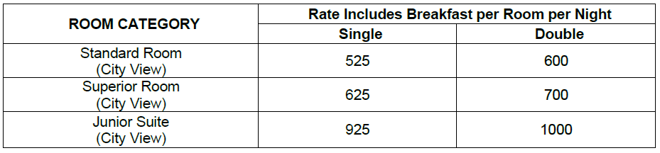 Rates are in Saudi Arabian Riyals, per room per night and are subject to applicable fees and taxes as per the Government of KSA. Currently 5% Municipality fees is applicable on the room rates and 15% VAT is applicable on the Municipality fees and total amount.