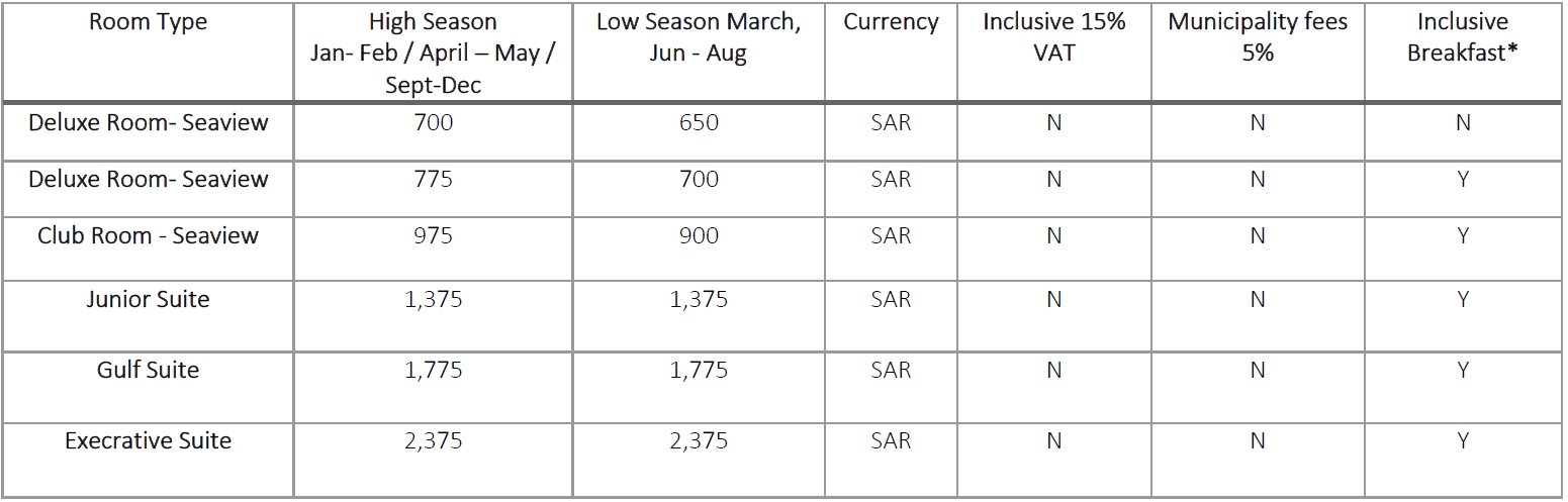 All reservations can be made by contacting via email: Reservation.AlKhobar@lemeridien.com or calling the hotel on +966 13 896 9000 Ext. 2146
